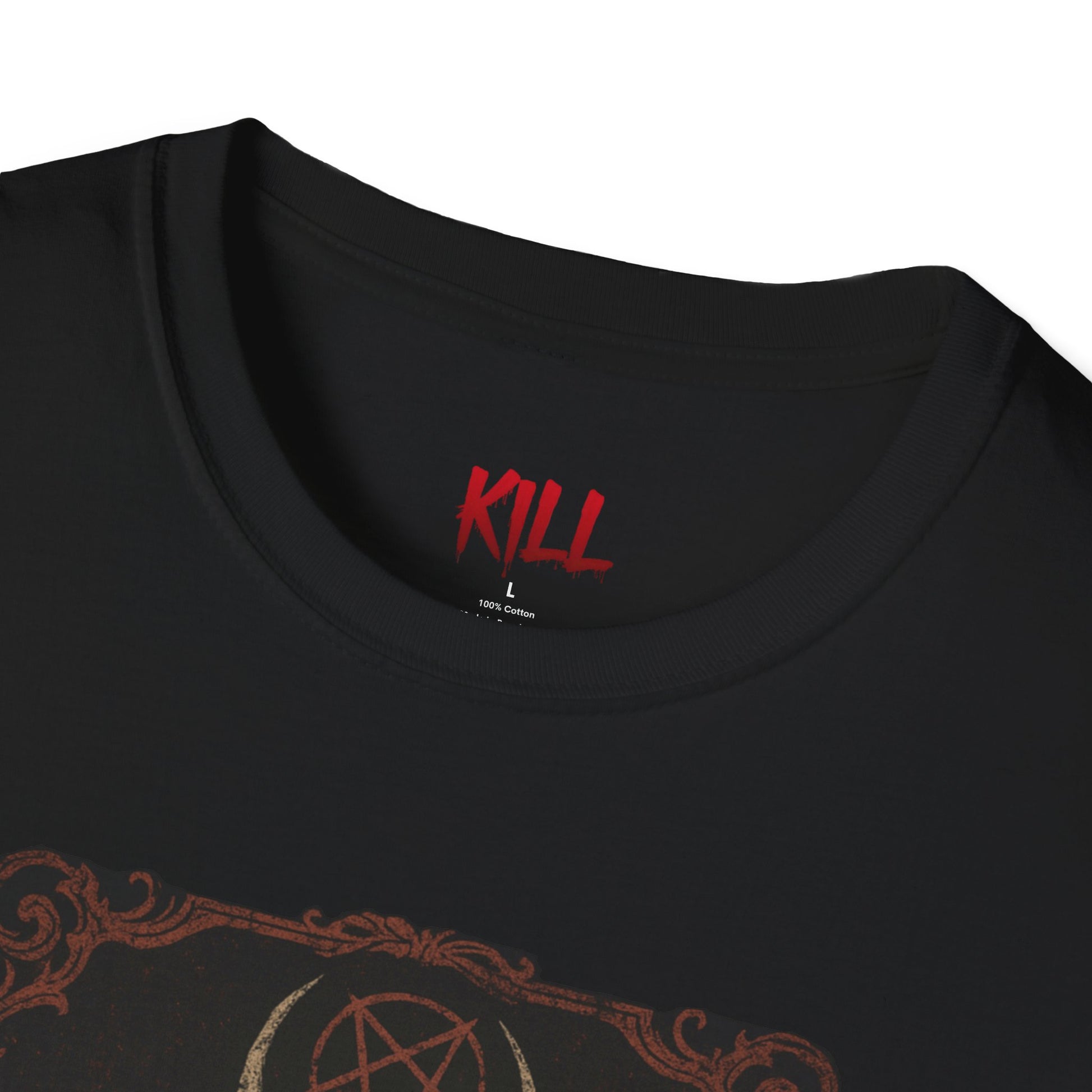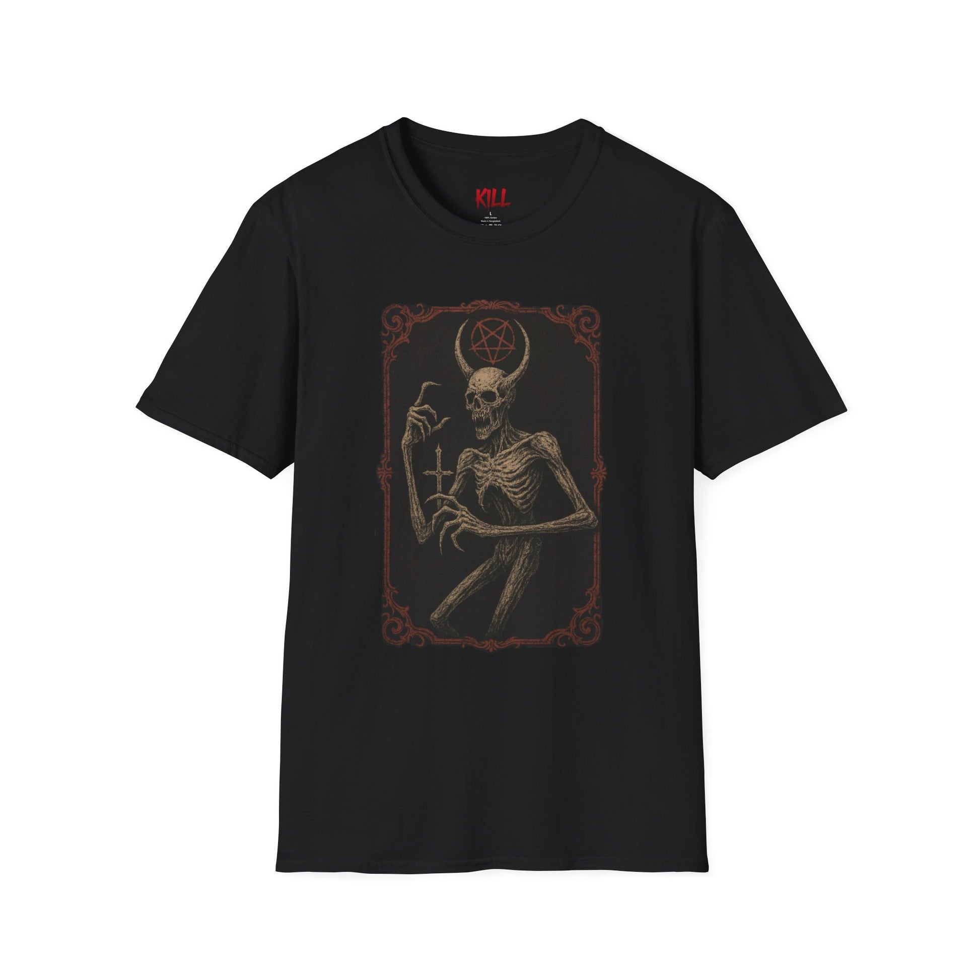 A demon-themed unisex softstyle t-shirt made from 100% ring-spun cotton, offering a lightweight and comfortable fit. Perfect for those who enjoy dark and edgy designs. Suitable for adults looking for a versatile and stylish shirt to wear on various occasions. Ideal for Halloween, gothic events, or anyone interested in supernatural themes.